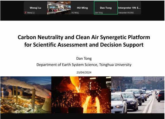 清华大学地球系统科学系同丹副教授在线分享了碳中和与清洁空气协同科学评估和决策支持平台的设计、搭建与应用。她表示,温室气体减排与大气污染治理的目标高度一致、协同效应显著。基于此,清华大学研究团队自主研发建立了上述平台,从工具数据角度解答协同路径中的定量分析问题,科学探索与揭示了碳中和与清洁空气的协同路径,为相关政策的制定和实施提供强力支撑。