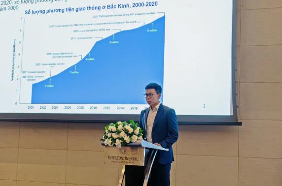 清华大学环境学院张少君副教授结合中国机动车污染治理的历程与经验,介绍了中国完善的“车-油-路”一体化排放控制体系,并详解了中国推行的车辆排放标准与油品标准升级、在用车辆排放监测、优化运输结构、推广新能源车辆、大数据管理等关键方法举措,为越南治理河内、胡志明等主要城市的交通污染带来诸多启示。