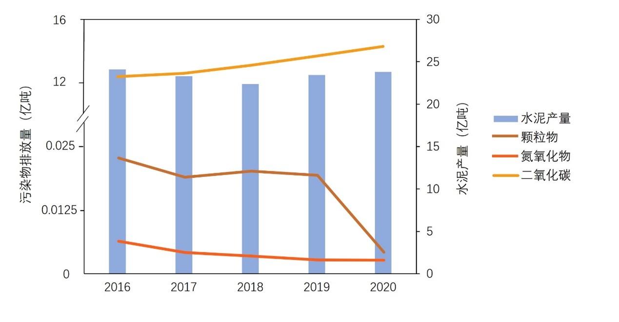 2020年,水泥行业的颗粒物和氮氧化物排放分别占全国工业源排放总量的20.9%和17.3%(生态环境部,2022),CO